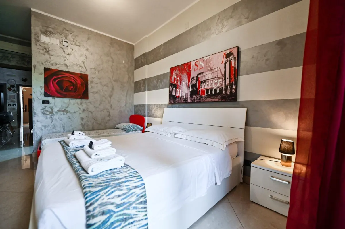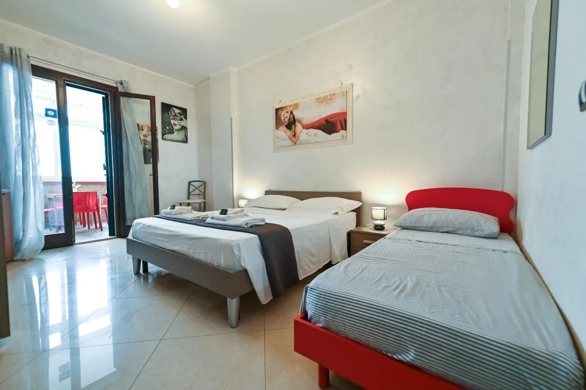 Un B&B familiare al piano terra e accogliente con tre tipologie di camere: doppia, tripla e quadrupla (quest’ultima dotata anche di cucina). Ogni stanza ha bagno privato, aria condizionata e frigobar, per un soggiorno comodo e senza pensieri.