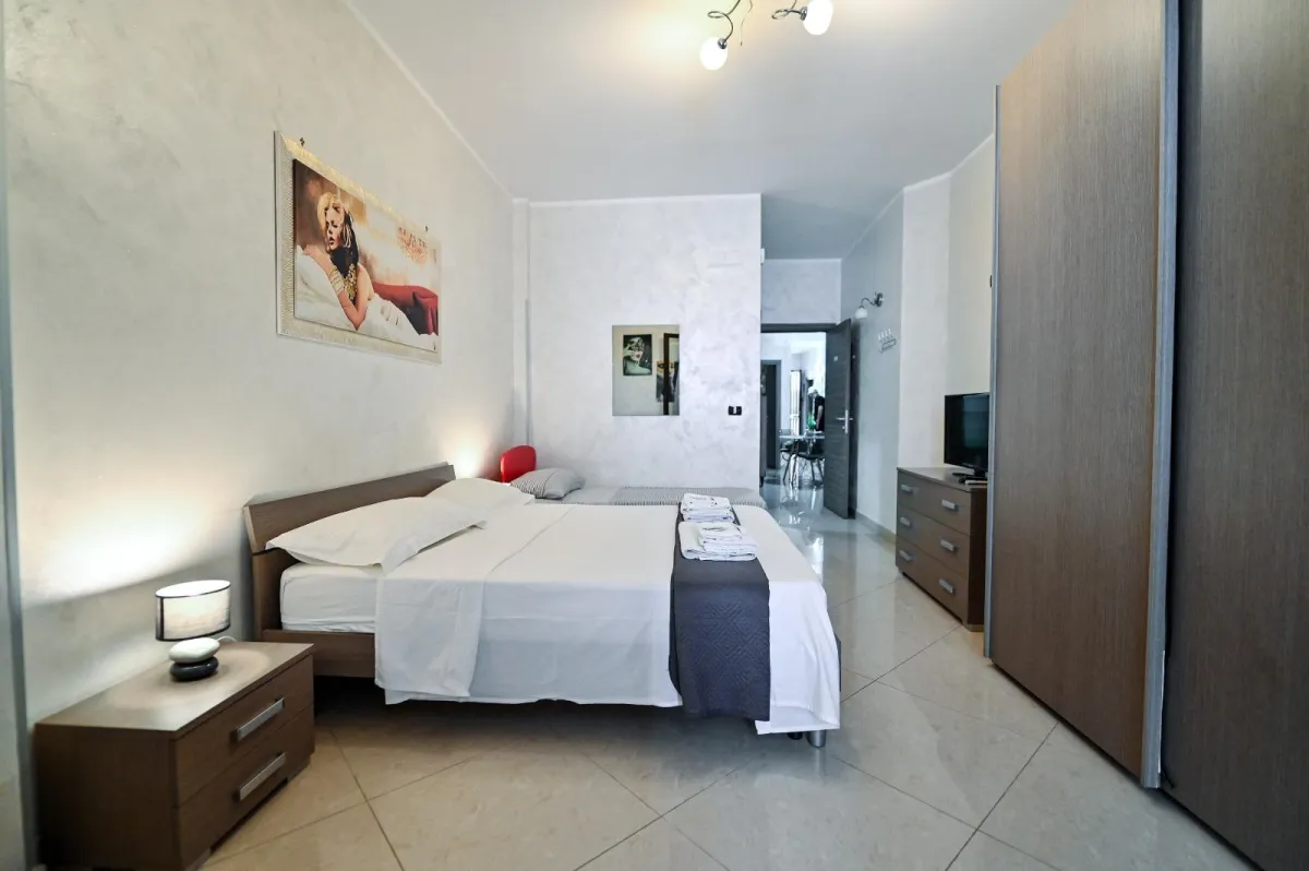 Ampio appartamento di 110 mq al primo piano, con tre camere da letto e una cucina attrezzata. Ideale per famiglie numerose o gruppi di amici, combina privacy e indipendenza nei pressi del centro di Galatina.